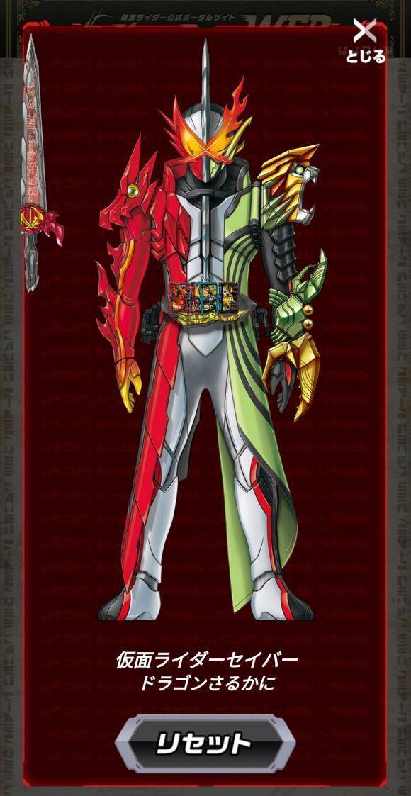 同样在假面骑士圣刃的官网之上我们看到了这个形态的设计图,假面骑士圣刃的设计图可以理解成为build风格横版欧兹,和欧兹一样都是拥有三种元素共同组成。这里就是神兽书和物语书的地方,这里可以很明显看到假面骑士圣刃飞龙猴子螃蟹形态,正如我们之前说的一样,黄色的猴子和青色螃蟹是最为显著的特征,整体来说这个造型有点奇葩的,不过还是可以接受的。