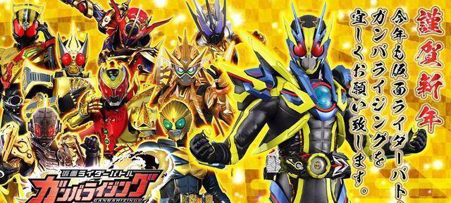 这次的新年贺图极其的喜庆,官方汇总了那些金闪闪的黄金骑士来庆贺2020年的新年,当然闪耀突击蝗虫是拿来凑数和宣传的,没有算到其中。
