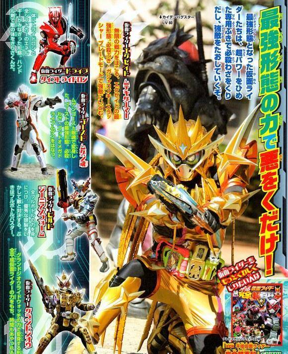 最后一页则是新十年的最终形态登场,这里就有drive的豆奶特浓形态,小尊的无限魂形态。天才形态和崇皇时王则是被誉为难兄难弟的存在,这两人在tv剧中的表现真的是一言难尽,毕竟两个人的设定都是拥有最为逆天的设定,但输出却是所有形态里最低的那个。同时在这次的杂志图上无敌大佬极为瞩目,一身金黄色的头发也是引起了不少粉丝的目光。