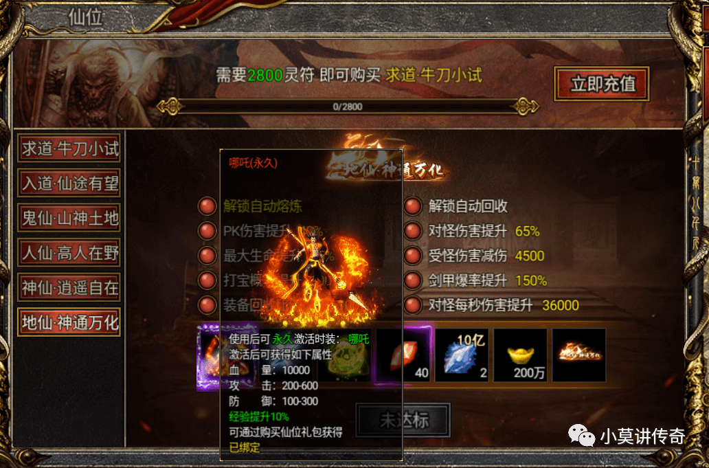 然而对于大佬玩家来说,开局地仙是标配,然而需要开到地仙仙位也是需要不少的开销,2800灵符--求道·牛刀小试(自动使用元宝经验)