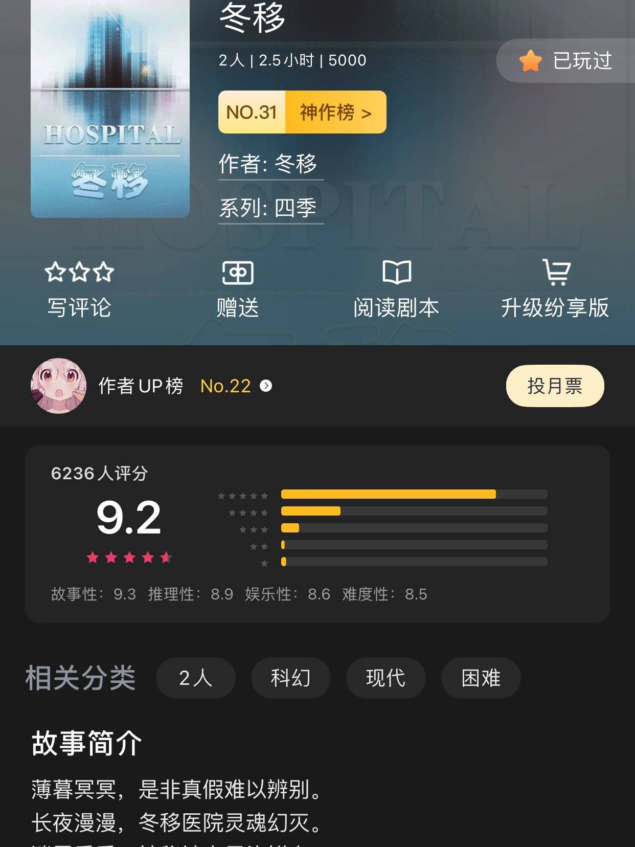 剧本杀【冬移】复盘解析+电子版剧本+线索卡+开本资料