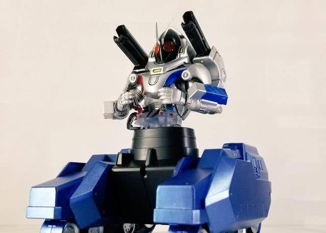 作为战神的坦坦,在剧中的表现可以说是假面骑士build最为出色的一个了,当然比起弑神的猩钻还是要差上一些的。最为意思的地方在于坦坦形态可以化身成为蓝色的坦克,因此这点在配件包就出现了。首先我们看到联动的就是假面骑士fourze的形态与其之间的联动,四仔的形象想必大家都应该都比较熟悉了,其中最为有意思的形态就是这个磁极形态了,在剧中的表现也是相当不错。而在这里则是和坦坦完美结合,如果用一句话来形容那应该就是坐在坦克里的宇航员了!