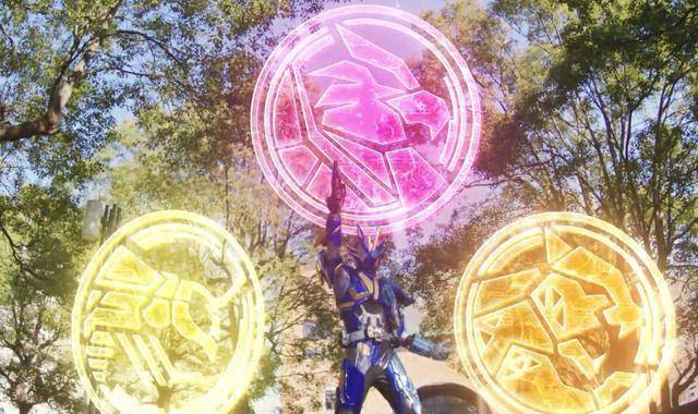 最后就是必杀技的叠叠乐,颇有当年帝骑哥穿牌踢,铠武柠檬阵羽织切片踢,还有ghost的15马甲连连套的感觉,不过没那么明显,这些是叠成一块变成一颗大型子弹。