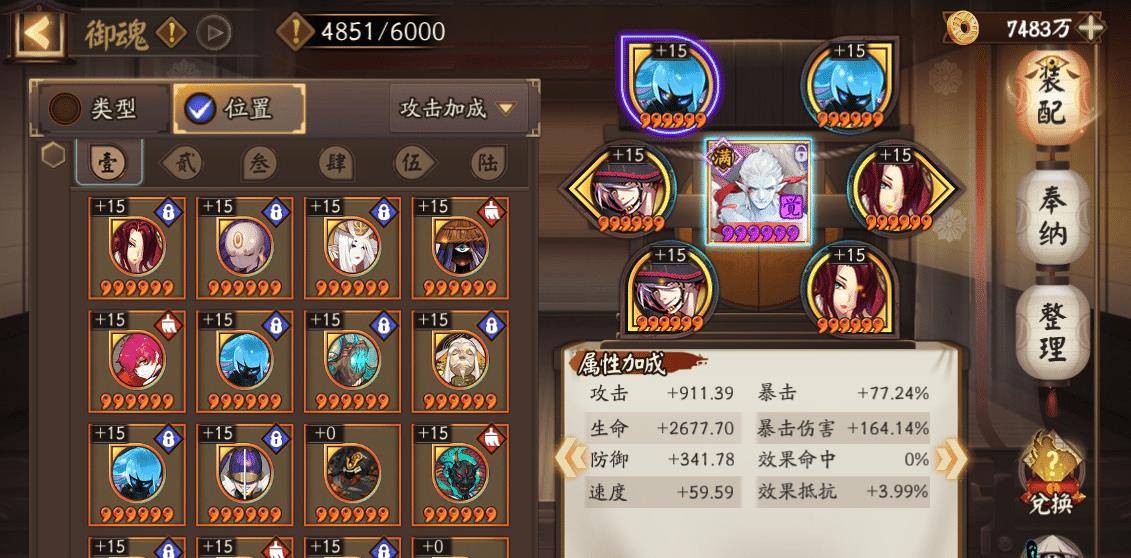 SP神启荒御魂选择伤魂鸟四件套,暴击两件套。二四六号位攻击加成、攻击加成、暴击伤害。