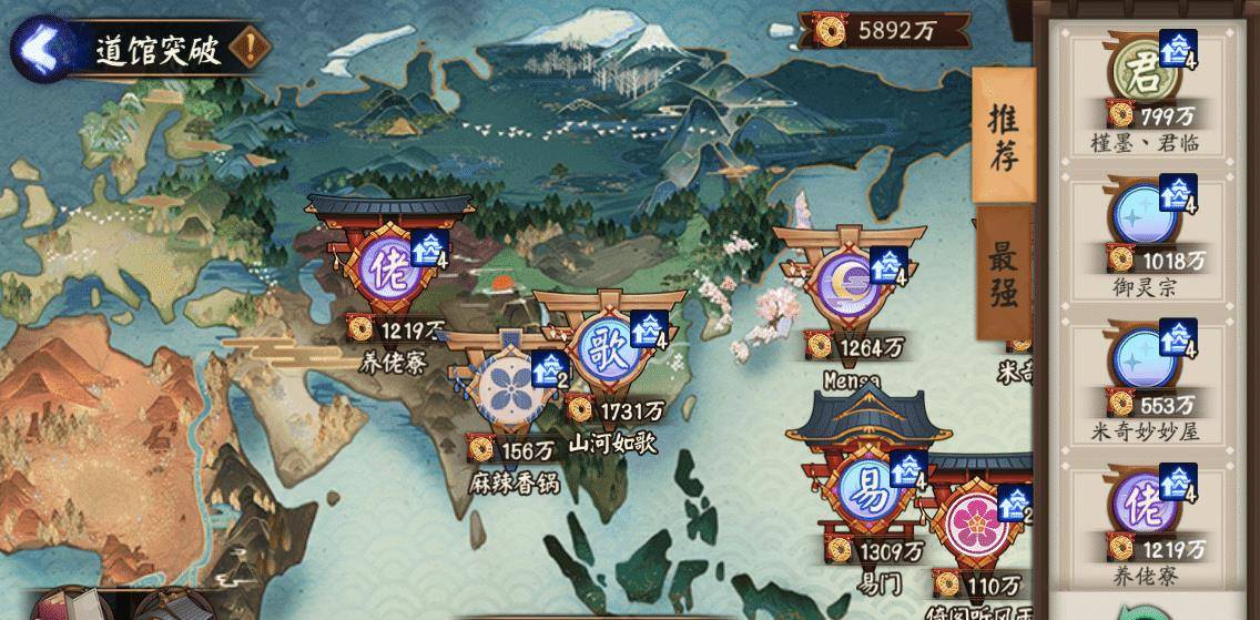 每日道馆突破可获得大量寮内资金,根据个人贡献度每日领取相应的寮内金币资源。