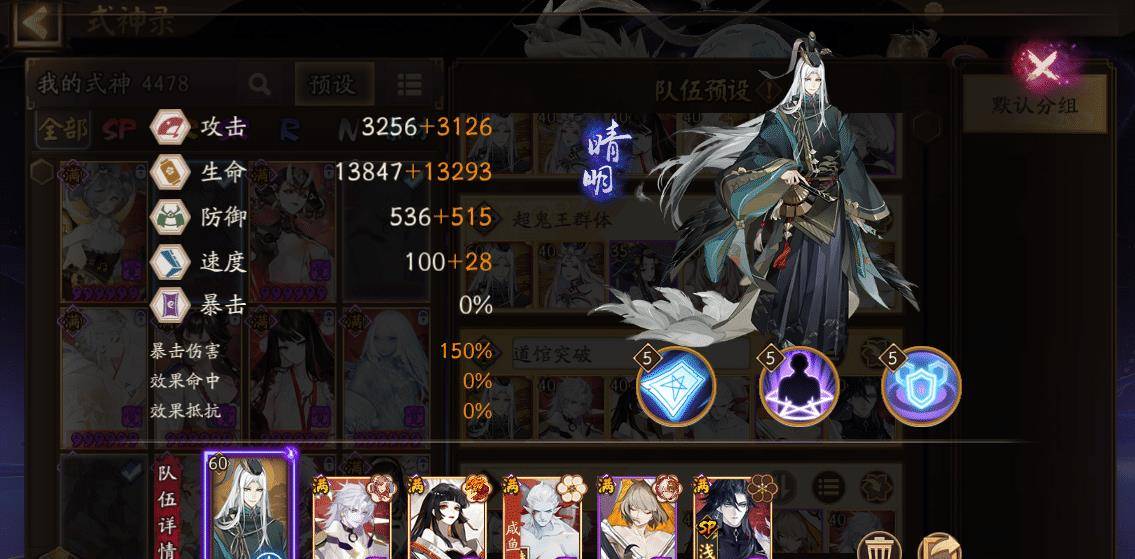 SP荒与SP花御魂搭配相同,以满暴击堆叠爆伤为主。