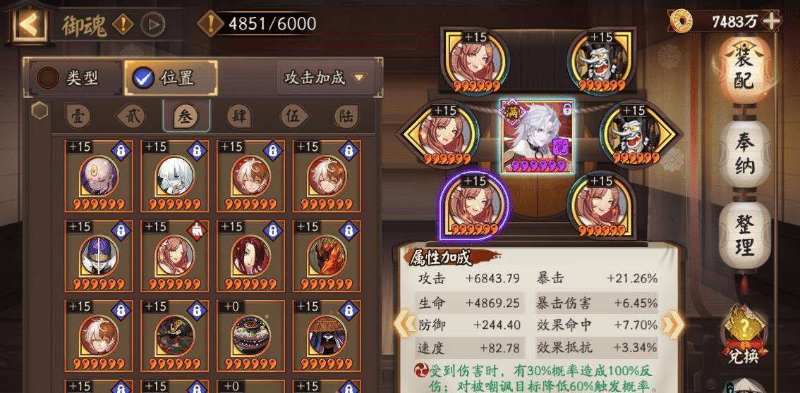 SP溟波彼岸花御魂选择伤魂鸟四件套,暴击两套。二四六号位分别为攻击加成,攻击加成,暴击或者暴击伤害。
