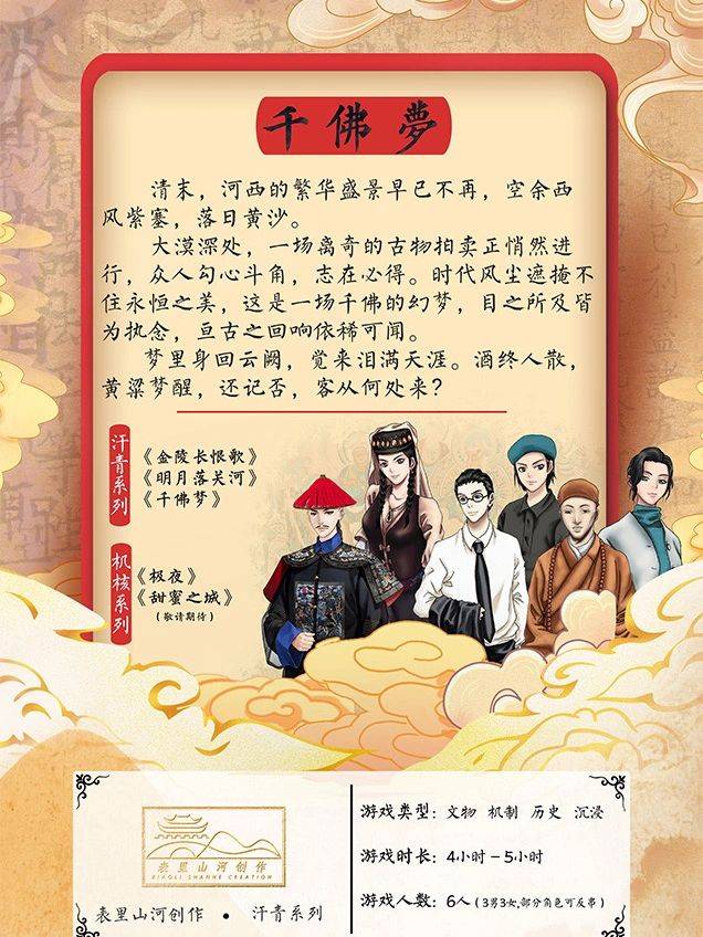 千佛梦是一个和朋友约了很久的本,由于种种原因最近才组到车。关于文物保护和敦煌文化的题材在市面上并不多见,打之前对这个本期待很高,玩下来体验一般。