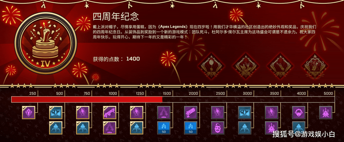 周年庆期间,所有登入APEX游玩的玩家均可通过“周年庆奖励追踪器”获取免费的福利内容,玩家需要完成游戏界面右上角的周年纪念活动挑战,获取最多5000点活动分数,即可将奖励尽数收入囊中,具体包含以下内容: