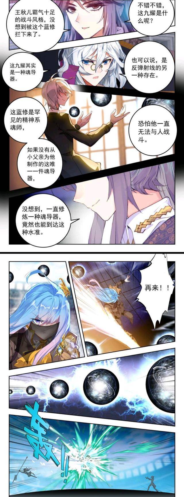蓝修其实也是精神系魂师,所以才能控制九耀,而且还拥有超乎寻常的魂导器制作天赋和使用天妇女,九道银光在空中纵横,就像一道大门一样挡住了史莱克战队的第一波进攻。