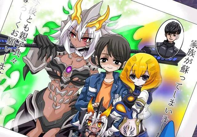 这次的同人图将核心主角锁定在了捷德奥特曼身上,确确实实非常的有噱头和看点,将捷德的爹妈给完美的进行了一波娘化操作,除了极恶贝利亚之外,还有作为定位母亲的格力扎,毕竟通过泽塔中的剧情和设定来看,格力扎这个妈妈属性严格来说没啥问题,配合贝贝剑还是通过捷德血脉诞生出来的,且有独立自我意识,作为捷德的孩子完全没问题,借此捷德也凑齐了相亲相爱的一家人。