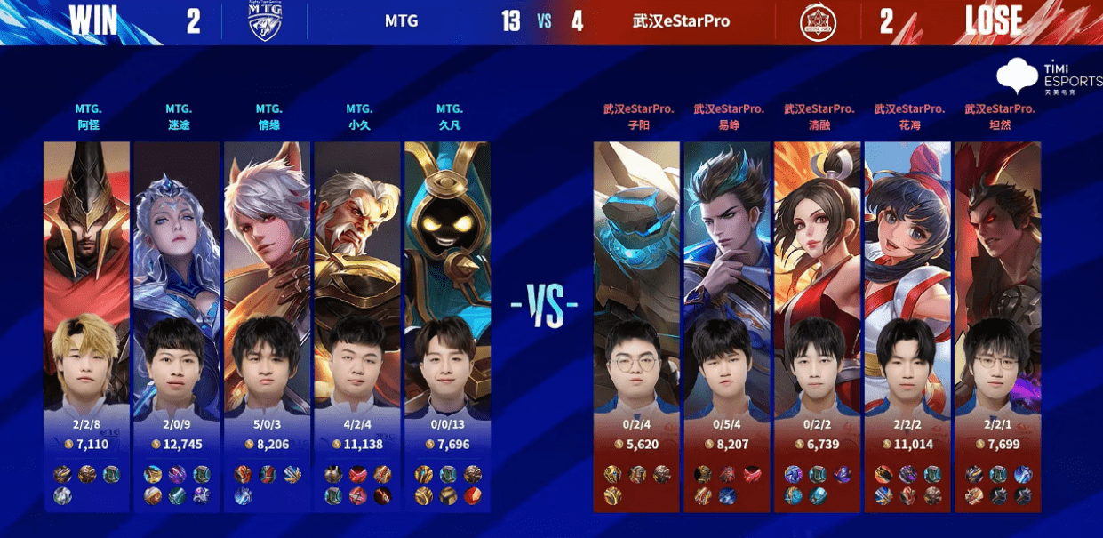 KPL春季赛常规赛第二周进入最后一个比赛日,武汉estarpro对阵MTG。这两支队伍已经很久没有交过手了,因为estar常年都在S组,MTG则是基本上都在B组。这场比赛本来大家都觉得不会有什么悬念,毕竟一个是八冠王队伍,一个只是临时席位的队伍而已,但比赛的过程非常刺激,estar先赢两局的情况下,差一点就翻车了,最终3-2惊险战胜MTG。