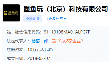 但是在企业查询网站上,墨鱼玩科技仍是两人各自占股50%的状态,杨葛一郎仍为企业法人。