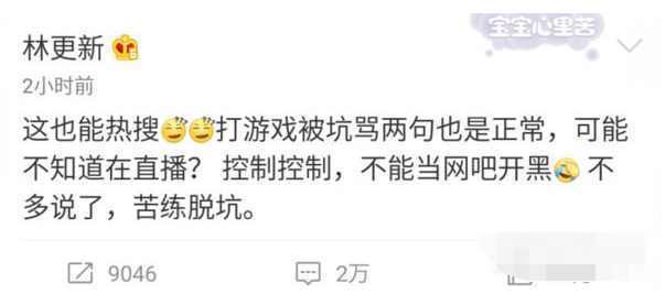 随后林更新也是什么也没有说,还在微博发博说自己太坑,被骂很正常啊!算是狠狠的给王思聪洗白了一波,没办法谁叫别人是王思聪呢?