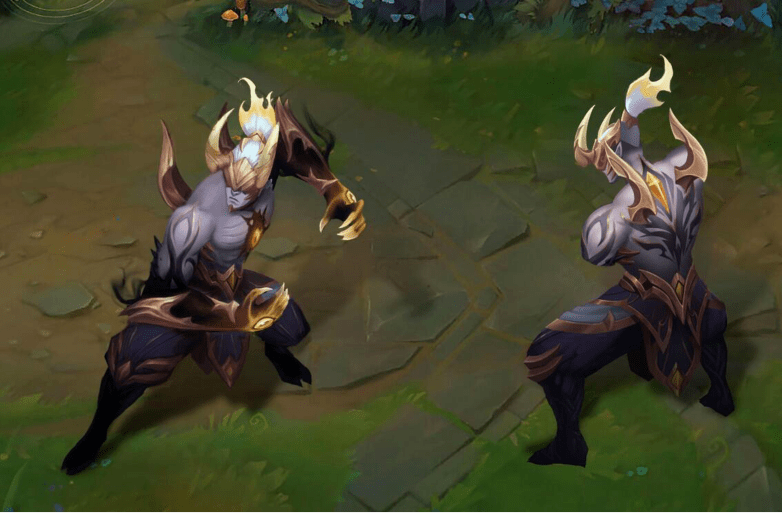 首先最值得关注的自然就是原皮和模型的改动了,盲僧不管是重做前的原画还是现在的原画都很不错,但是那个模型实在是不敢恭维。也正是因为那个驼背模型的拖累,导致盲僧几乎所有没改动作的T3级皮肤都没法看。
