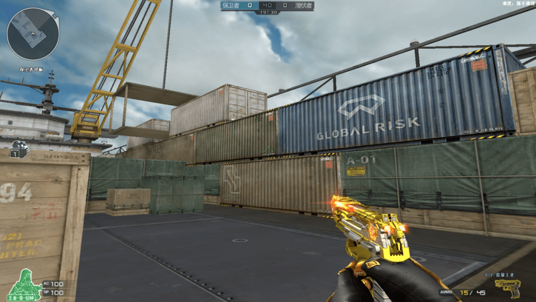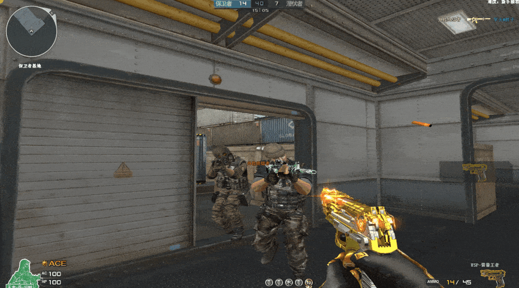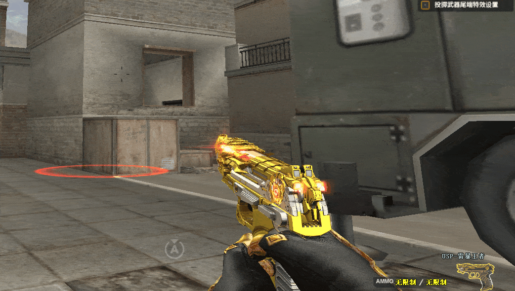 USP-雷暴王者外观以金色为主,同时枪身主体以及握把部位搭配银色的点缀,外观细节设计更为出众,枪身的光效以及特效设计也堪称完美。
