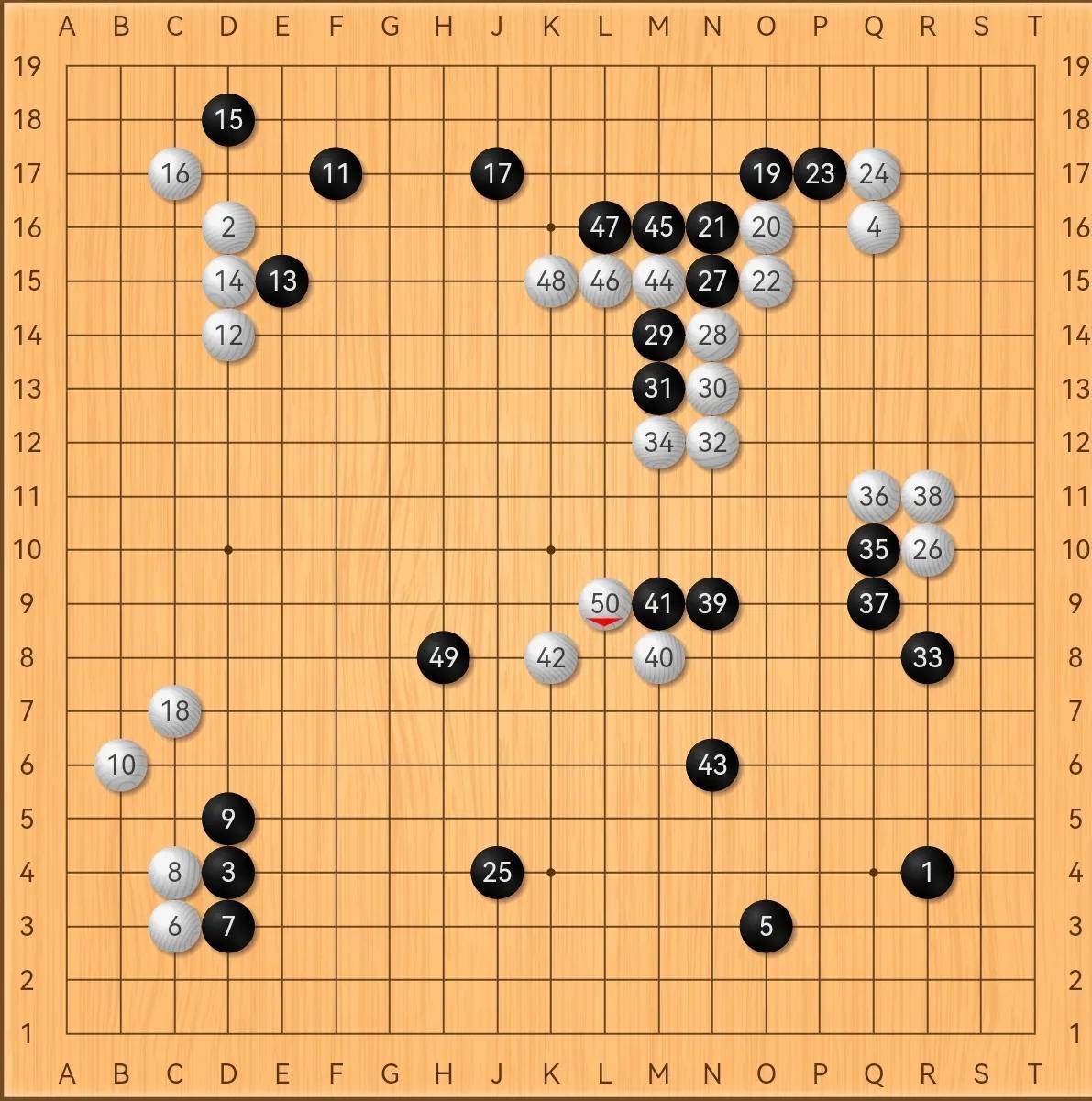 设计达到39。双方以一定的来来往往来往。显得有些安静沉闷。然而,表面上的镇静只是一种忍耐的表现,而不是暴露破绽。和平的幻想往往隐藏着战争的准备。这不,当右下角的黑方刚出现的时候,白方的40消法已经迫不及待了。看图(1-50)