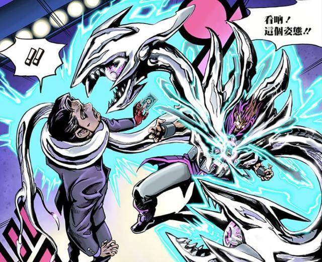 《游戏王》的画风无处不在,从反派海王身上,粉丝们竟然认出了青眼白龙的影子。虽然高桥和希老师极力将自己的画风欧美化,不过依旧保留了《游戏王》中棱角分明的画风。尤其是《SECRETREVERSE》中的反派海王变身后的形象,简直像极了《游戏王》中青眼白龙。