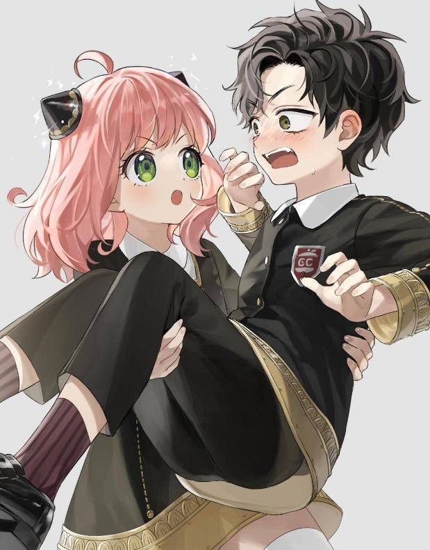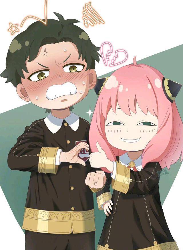 首先是看着就让人分分钟直接体会到,什么叫甜到齁嗓子的cp图,这一对看着太般配了,不论是身高颜值还是性格方面,一本正经的次子达米安和娇小可爱超级萌的阿尼亚,两人陪着用手比了一个小爱心,满眼都是爱你的模样可还行。