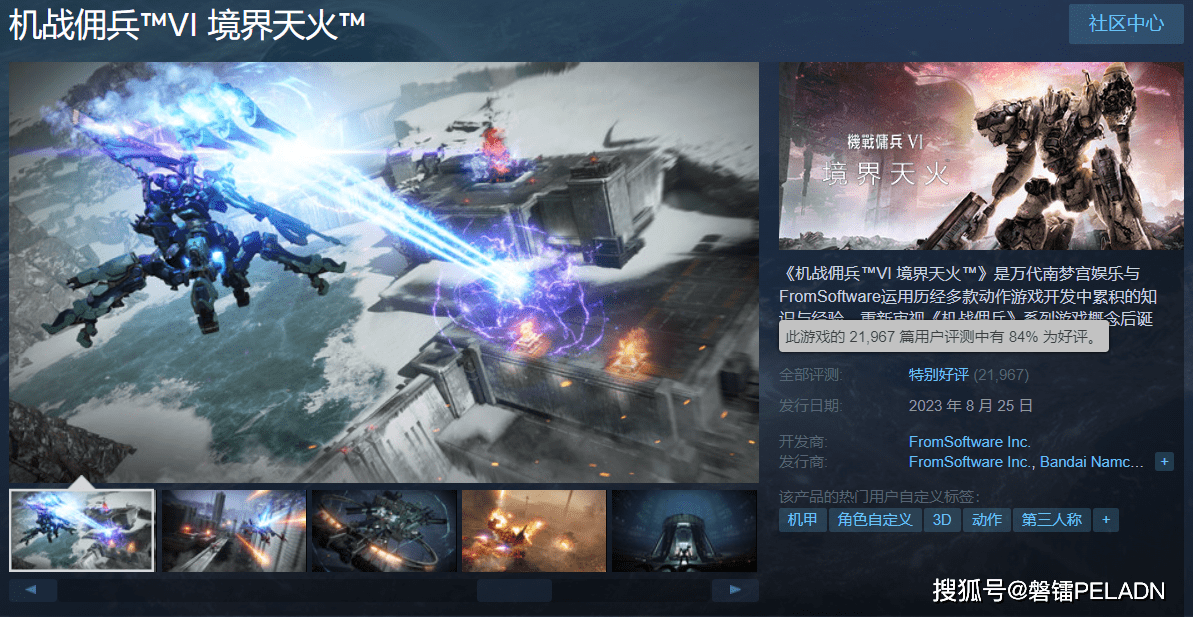 《装甲核心6:境界天火》作为Fromsoftware的招牌机甲IP续作,经典系列十年后回归,已经发售快一周了,目前在Steam上已经是特别好评了,2W+的评价中有84%的好评。