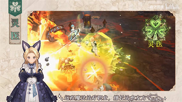 2、【灵医】:远程魔法治疗职业,奶妈形角色,伤害较低,也是副本中非常抢手的职业。
