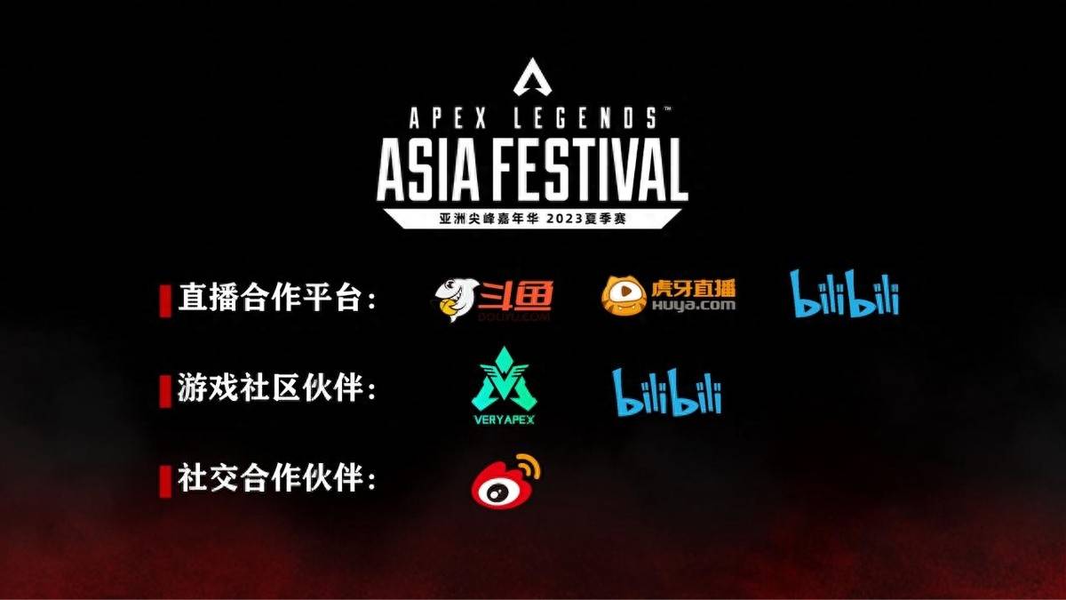 APEX亚洲尖峰嘉年华官方直播合作平台:斗鱼直播、虎牙直播、哔哩哔哩