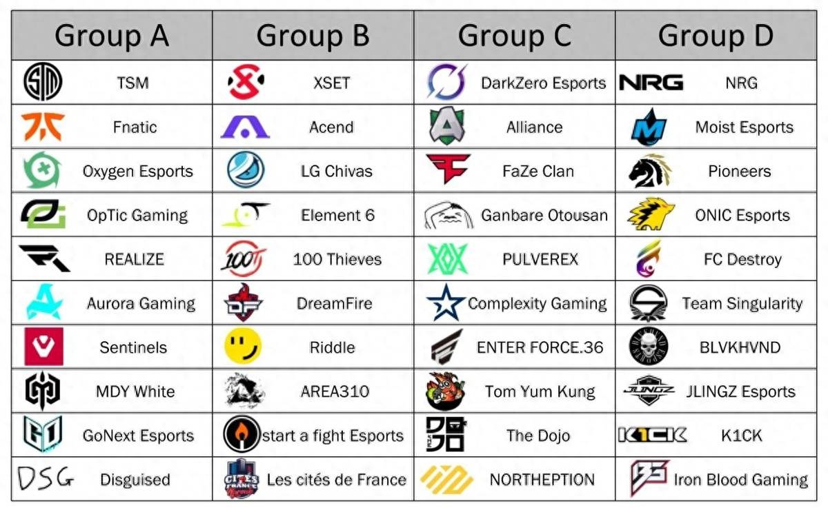 (ALGS-Year3小组赛分组情况 其中B组的AREA310代替了退赛的CR战队登场)