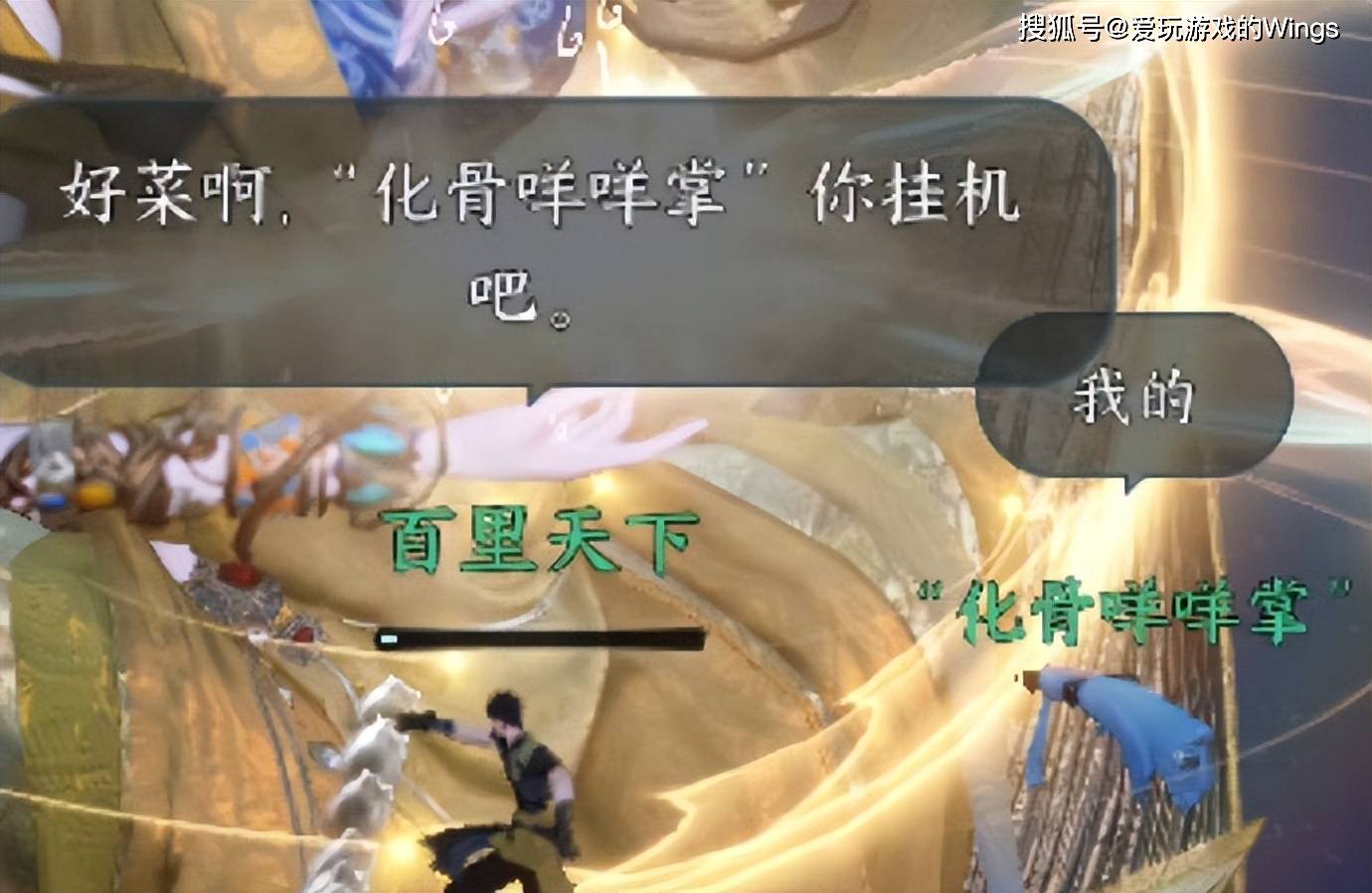 而百里天下这个碎嘴子居然还敢嫌弃咱们的咩咩姐,有时候化骨咩咩掌不小心被boss打趴下后,百里天下还会说“好菜啊,化骨咩咩掌你挂机吧”,百里你是不是缺少咩咩姐的毒打?