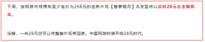 原本和其他热门网游一样,动辄数百元的极品外观,在新版本上线后直接调低到十位数乃至个位数的价格。