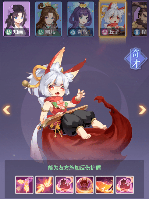 2、丘子(30级解锁):前期优质封印伙伴,可为友方施加反伤护盾。
