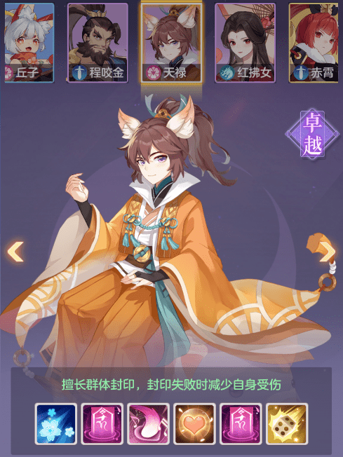 6、天禄(45级解锁):概率双封,中后期优质封印系伙伴。