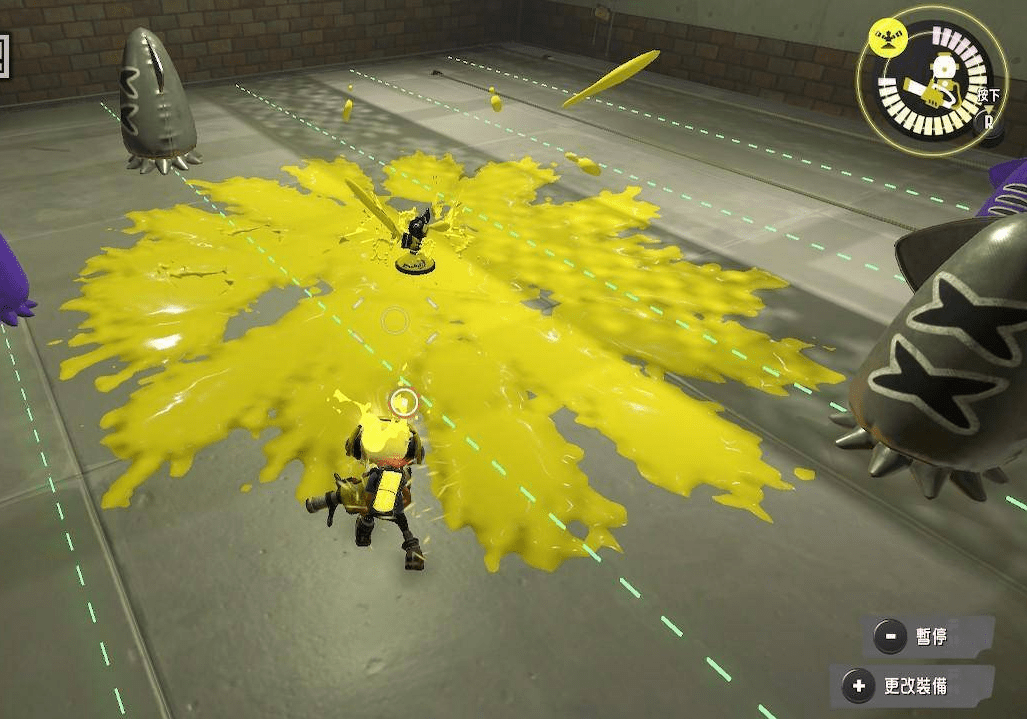 投掷放置型副武器,会在接触任何障碍物平面后立刻附着,并开始向四周环境旋转泼墨。墨水可对敌人造成少量伤害,且可被敌方破坏。旋转速度和泼墨量随时间衰减。通常不会用于以击杀为目的的副武器。