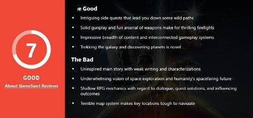 《星空》媒体口碑已于北京时间0点解禁,外媒GameSpot给游戏打出了7分。
