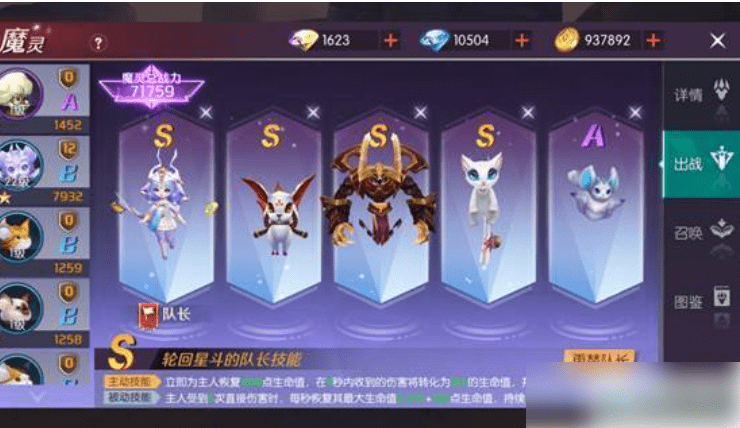 可随身携带的宠物,集收集、成长、技能加成为一体的全新玩法。一种拥有外形、属性和技能的宠物,分为SS/S/A/B/级,每个魔灵最高可升至五星,每个魔灵魂晶都可激活魔灵,升星需要收集一定数量的魔灵魂晶。收集与获得,跟随主线解锁可以获得第一个魔灵:星斗。首次免费钻石占星可以获得第二个魔灵:暹罗喵。其他获得:通过日常获得魔灵抽奖卷,或者占星获得魔灵魂晶。图鉴收纳了目前所有可激活的魔灵,激活、升星某一个魔灵都可以为魔灵图鉴增加经验,图鉴等级可以为玩家增加攻击、防御和生命值,成长:升级:通过魔灵经验糖果、高级魔灵经验糖果、神话魔灵经验糖果给魔灵升级;升级可以提升魔灵自带的属性。升星:收集一定数量的碎片,可以提升魔灵的星级。升星可以提升魔灵技能等级。