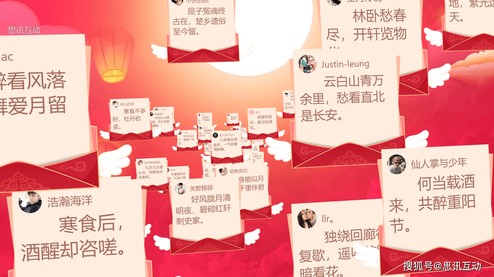 因为用户输入的祝福语,可以以弹幕的效果展示在大屏幕上,所以祝福抽奖又成为“弹幕抽奖”。祝福语装在带有翅膀信封里从大屏幕内不断飞出,现场效果非常震撼。