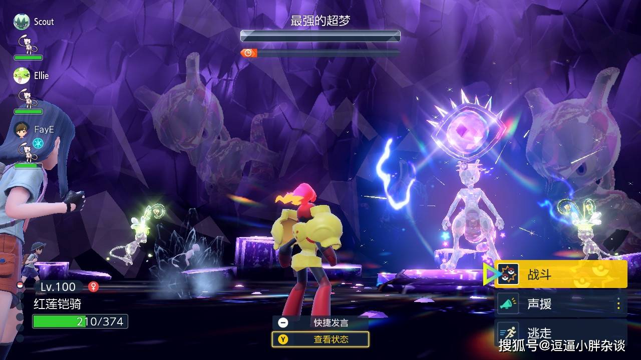 开场后1名队友开墙,其他队友使用虫之抵抗将超梦的特攻降至最低,然后攻击手剑舞强化+吸血连打即可,辅助手可以视情况加防回血。一个人的话很难快速降低超梦能力值,所以考验默契度的时候到了。