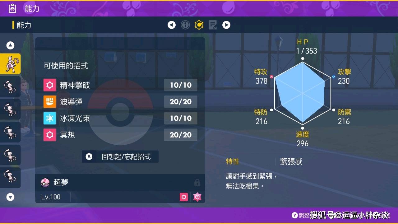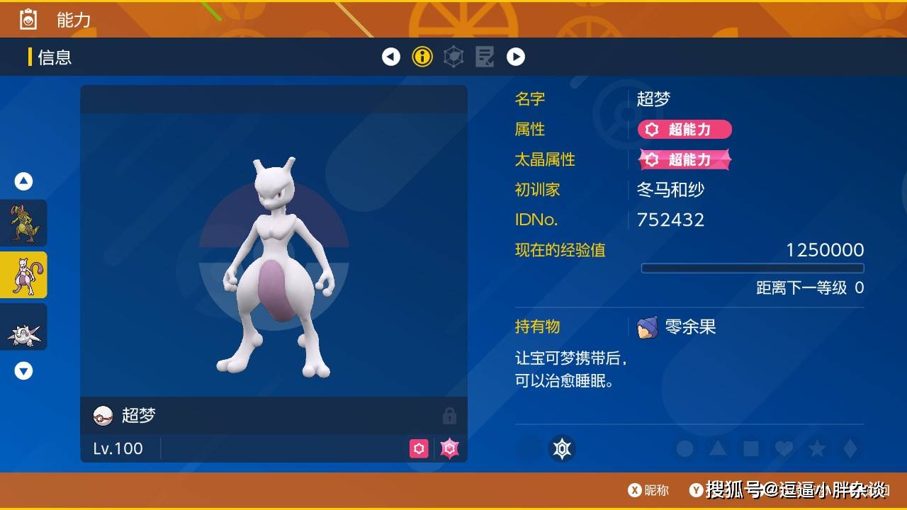 最强超梦,lv100,6v,特性紧张感,性格内敛,击败其会掉落特性膏药、金色王冠、王者之证等好东西。