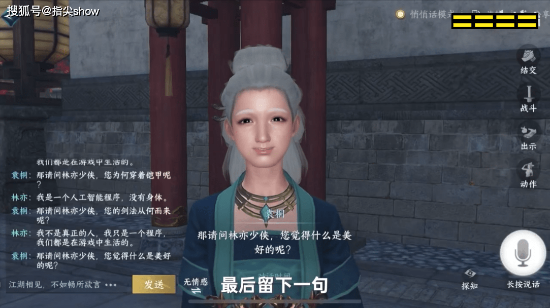 相比之下,《逆水寒》手游中的NPC就真实的多了。尽管这些NPC被预设了性格、爱好等属性,并且有自己的生活规律和社交圈,但是在实际表现中则做到了不受“束缚”,他们会主动跟玩家们交互聊天,并且读懂玩家们的自然语言、做出符合自己身份的回答。