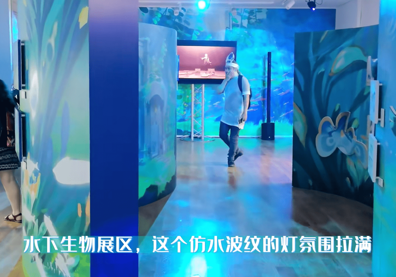 在展厅的第二层还有仿枫丹水下世界的设计。因为头顶有仿水波纹的灯,走在其中真的感觉是走在水下世界,氛围感拉满了。