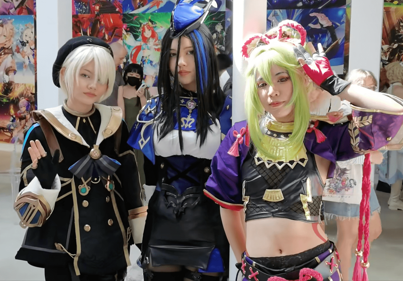 再往里才是展厅的主体,这里就能看到有三层高的占地面积,内容也十分丰富,不仅有各种游戏的角色三视图,还有各种角色Coser,很多枫丹角色虽说还没上线游戏,但完全不妨碍他们的人气。