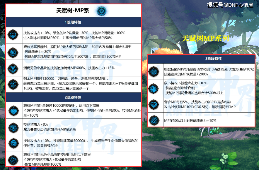 【天赋树MP系列】:1阶段、2阶段和3阶段构成,每个阶段,都涵盖了4个天赋属性。