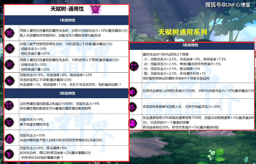 【天赋树通用系列】:1阶段、2阶段和3阶段组成,每个阶段,包含了4个天赋树属性。