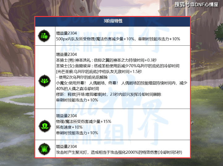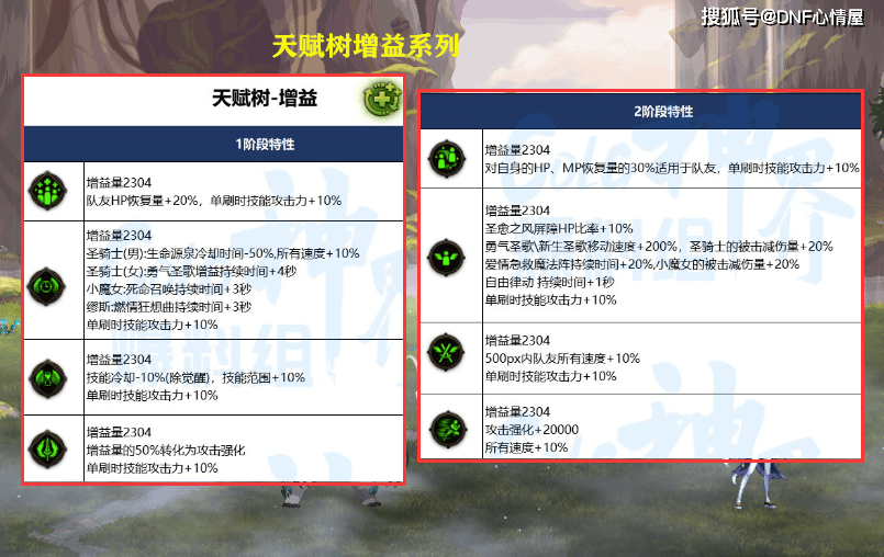 【天赋树增益系列】:也是由1阶段、2阶段和3阶段组成,每个阶段涵盖了4个天赋属性。