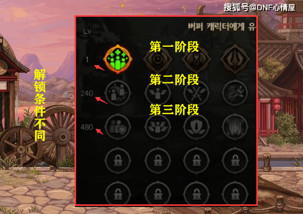 2阶段“天赋”属性解锁,要身上的“仙系列”装备,词条总和达到“240”;3阶段“天赋属性”解锁,身上的“仙系列”装备,词条总和需达到“480”。