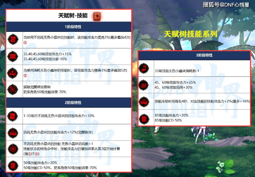 【天赋树技能系列】:1阶段、2阶段和3阶段构成,每个阶段,包含了4个天赋属性,跟技能方面息息相关。