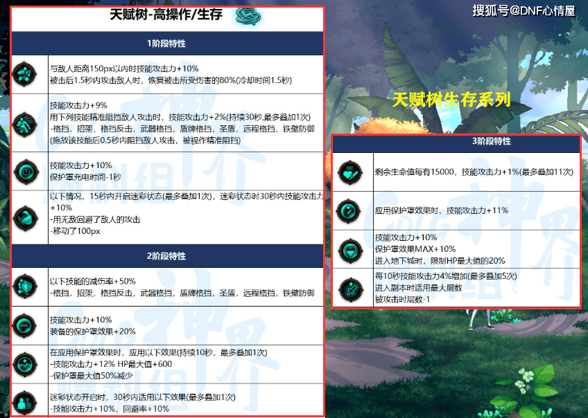 【天赋树生存系列】:由1阶段、2阶段和3阶段特性构成,比较注重生存方面,但对于国服玩家来说,或许没那么重要。