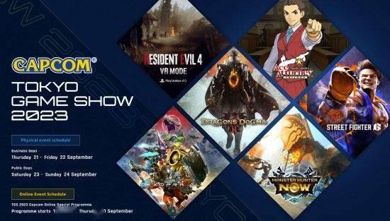 从图中可以看出,本次参会的卡普空游戏包括:《逆转裁判》《原始袭变》《街头霸王6》《怪物猎人Now》《生化危机:4重制版VR模式》以及《龙之信条2》。