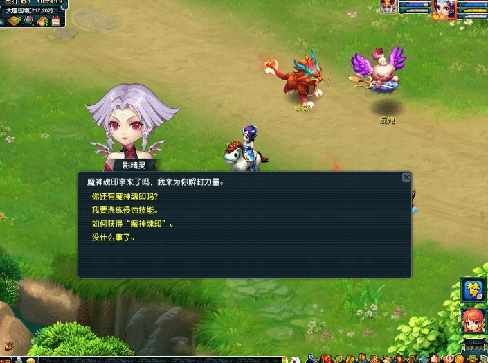 值得注意的是在【大唐国境(218,196)】的影精灵处可以领取、购买魔神魂印以及使用各种类型的魔神魂印对侵蚀技能进行洗练。并且除了每日第一个魔神魂印免费领取外,后续可以花费50000两梦幻币购买(每次购买后,费用增加50000两,次日清零)