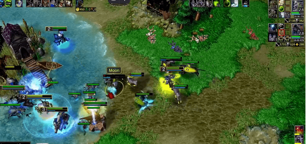 昨晚的开局也确实朝着Moon大胜120的方向发展。首盘EI,120假开矿真升本,骗得Moon出了大量女猎手,按理说,以120的操作,UD三本一波拿下NE(只有女猎+小鹿)应该问题不大。然而这一次,120却在毁灭未升好之际贸然出远门,结果被Moon抓个正着,KOG+DH+小鹿大杀四方,120一波亏掉将近1000的战损,局势瞬间崩盘。