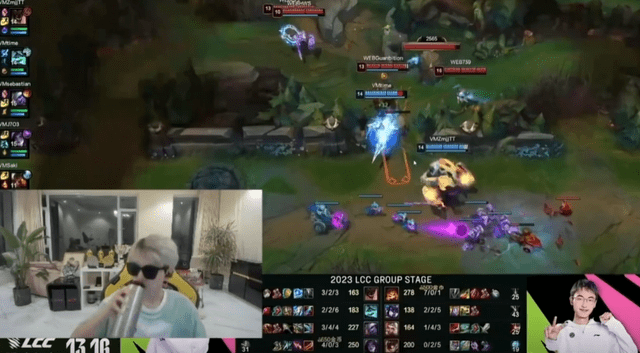 这场比赛结束后,作为瓦人队队长的电棍开播后自然是遭受了弹幕的攻击与嘲讽,为此本就输了比赛后心情比较消极的电棍也是忍不住红温,开始和直播间的弹幕对线足足接近两个小时。而Doinb作为乐子人也是闻讯赶来看乐子,甚至还戴上了墨镜面带笑容,让直播间的观众也直呼赛后对线的环节比比赛还精彩。